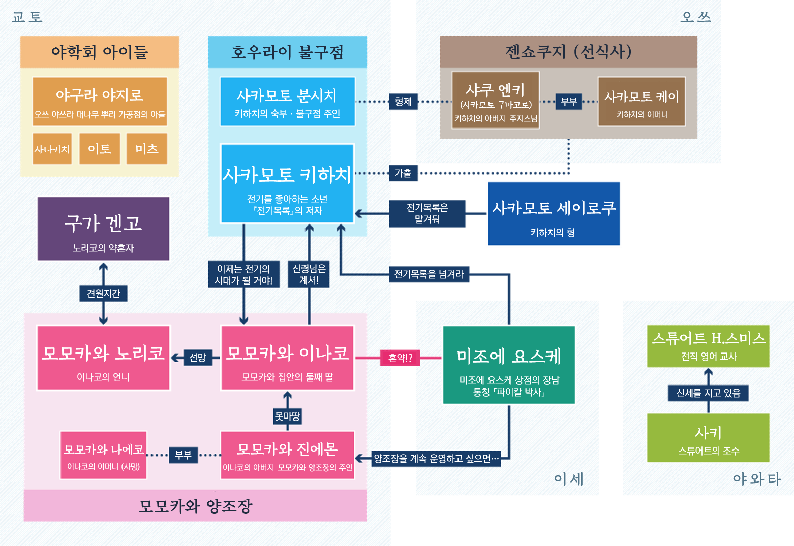 결혼을 막을 유일한 방법은, 기서『전기목록』을 찾아내는 것. 그것은 키하치가 어렸을 때 쓴 전기에 관한 예언서로 일찍이 형·세이로쿠가 들고 가버려 행방이 묘연한 상태였다. 키하치와 이나코―― 두 사람은『전기목록』을 찾아 교토·시가에서 도망다닌다.